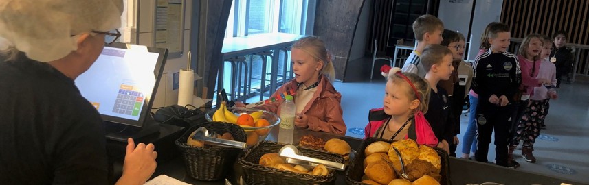 I skolens kantine betales med et AabenraaPay kort, hvilket er med til at skabe hurtigere kø-afvikling, så eleverne får mere ud af deres frikvarter.